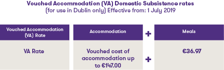 - a separate Vouched Accommodation (“VA”) rate continues to apply where employees encounter difficulties in sourcing suitable accommodation in Dublin within the standard rate;